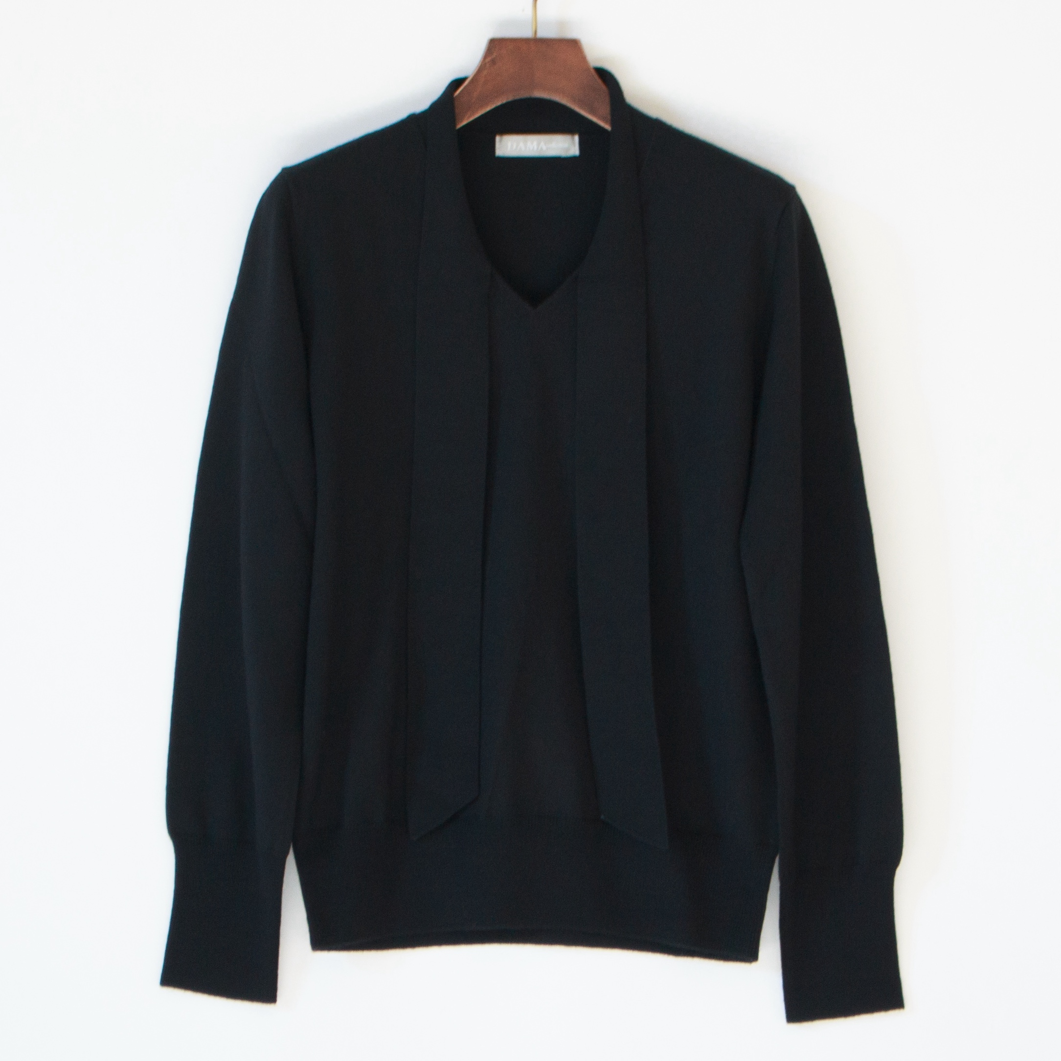 衿がほどよく開くことで顔まわりに明るさが生まれ、街へ出かける日も、家でゆっくり過ごす日も、身につけるだけで少し気持ちが上向きになるお洋服。そんな大人の気持ちに寄り添う一着を、と思いながら形にしたのが、このプルオーバーです。