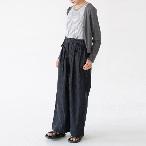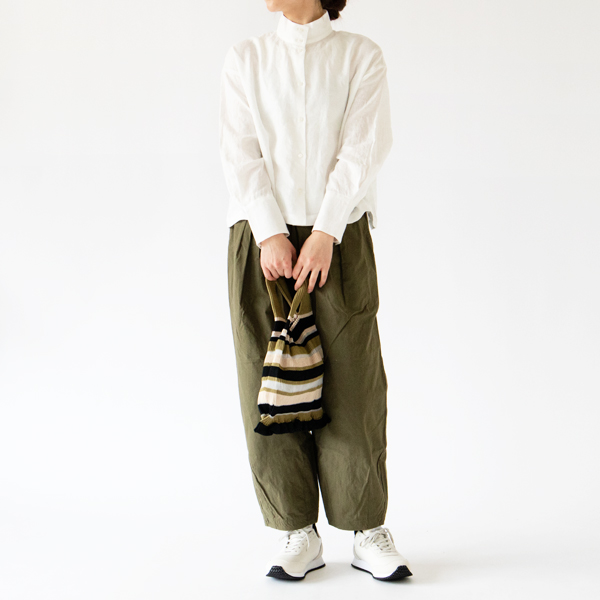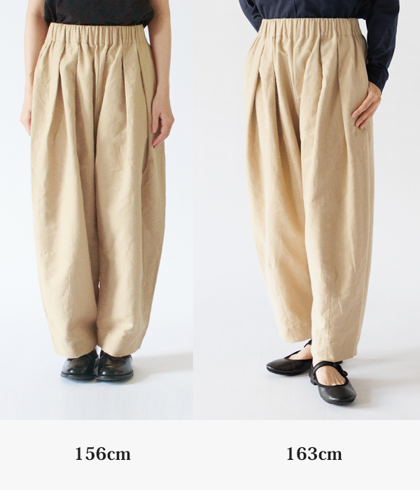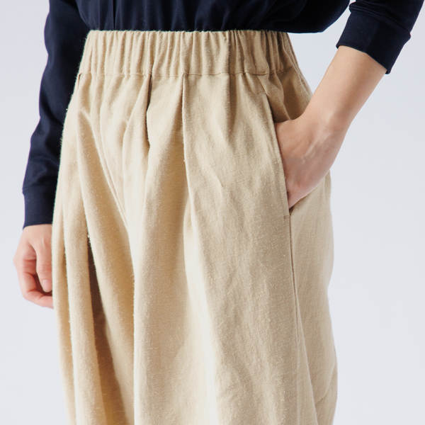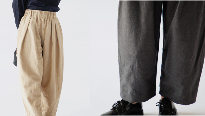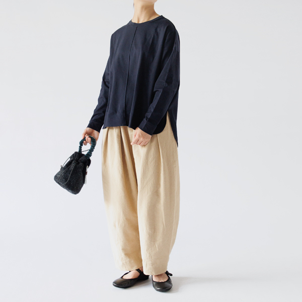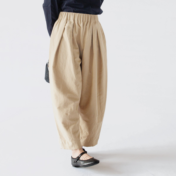 時間をかけて自分だけの一本に育っていく過程も、このパンツの楽しみのひとつです。流行を追うだけでなく、長く着たいと思える服を選ぶ。綿ヘンプ 裾ダーツバルーンタックパンツは、そんな想いに応える形にした一本です。毎日の暮らしの中で、ふと鏡を見たときに「今日の自分、ちょっといいな」と思える、そんなささやかな満足をくれるパンツに仕上がりました。