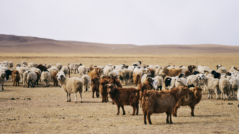 そして、この素材の背景にはモンゴル遊牧民の暮らしを守りながら続けられるサステナブルな生産のストーリーがあります。モンゴルの広大な土地に暮らす遊牧民の方々は、家族の一員としてカシミヤ山羊や他の家畜とともに移動をしながら生活拠点を変え、春になると自然と毛が抜け落ちる前にカシミヤ山羊の毛を櫛で梳いて内側の柔毛を集め、カシミヤ山羊に負担をかけないようにカシミヤの原毛を提供できるのです。近年、ファストファッションブランドがカシミヤをより安価に採取しようとして、一部の地域でカシミヤ山羊の過放牧と草地の砂漠化が問題になっていますが、今回ZUTTOがカシミヤの素材調達を依頼した遊牧民たちは、このようにカシミヤ山羊を自然放牧する伝統的な暮らしをしており、ストレスなく豊かな自然の中で育っています。
