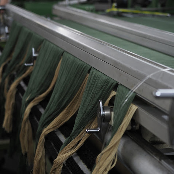 緯糸には、東和毛織の「フロート」というメリノウール糸を採用。一般的なメリノウールよりも繊維が細く、なめらかな肌触りと、美しい発色をあわせ持つ一級品です。