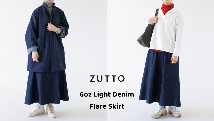 冬は、暖かさを優先して機能性のある服を選ぶことが多い分、意外と「楽な着心地」に慣れている季節でもあります。春を意識して装いを軽くしたくなっても、その心地よさは手放したくない、と感じる方も多いかもしれません。6オンスライトデニム フレアスカートは、柔らかく仕上げられた生地と、さまざまな体型の方に対応するゆとりのあるサイズ感で、気負わず穿ける心地よさを実現しています。