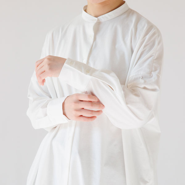 オーガニックコットン天竺×布帛ドッキングスタンドカラーシャツ