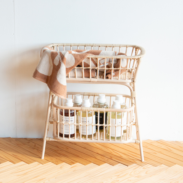 お子様のいるご家庭では、1段目におもちゃ、2段目には絵本や教科書を入れるなど、ランドリーバスケット一つで身の回りのものを整理することができるのもいいですね。新生活を始める子どもへのプレゼントにもおすすめです。バスケットは底から半分の高さまで目をきゅっと詰めて編んでいるため、整理しきれない小物類を入れても目隠しになってくれるのが嬉しいです。日に日に変化していく籐の味わいも楽しめます。