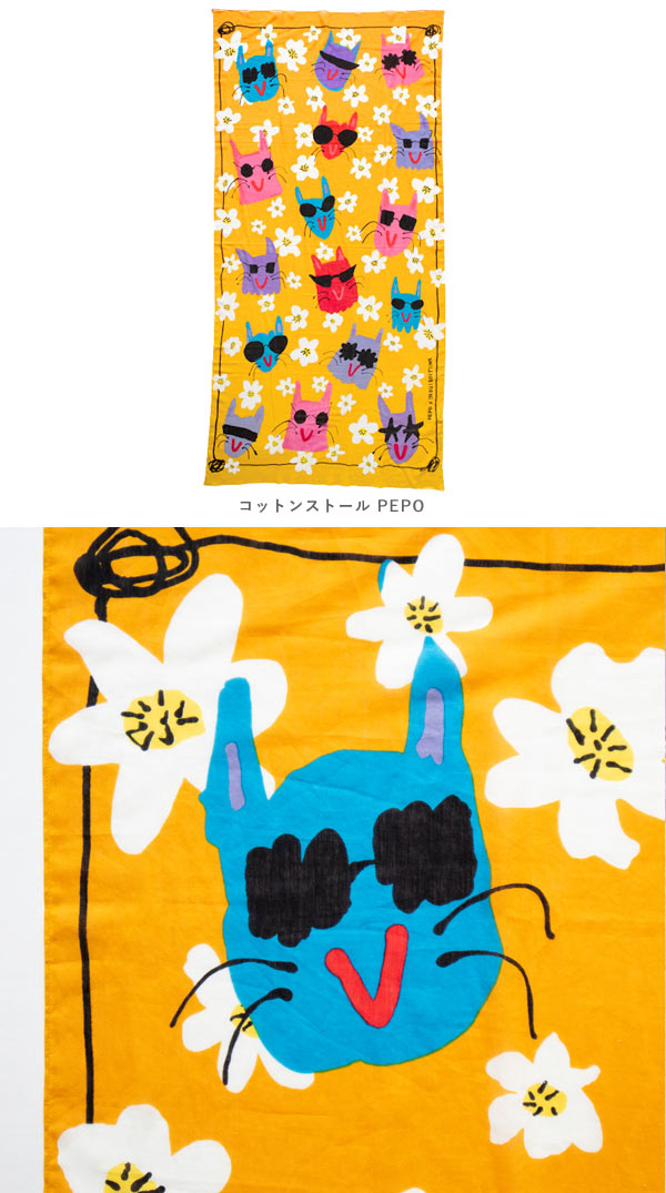 リアルなマーカーラインだけでなく、手塗りしたかのような掠れ具合までも表現されているのには驚きます。INOUI EDITIONSの中でも異彩を放つPEPOは、首に巻きつけるとカラフルな色味がスタイリングを明るくしてくれます。