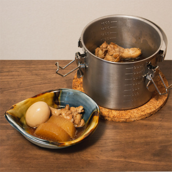 寒くなったらシミシミのおでんや煮物が恋しくなります。大きな具を翌日も美味しく食べたいから、給食缶ミニがおすすめです。残りはそのまま冷蔵庫に入れて、翌日コンロで温めて食卓に出せば、二日目でも即席でも美味しい晩御飯の完成です。