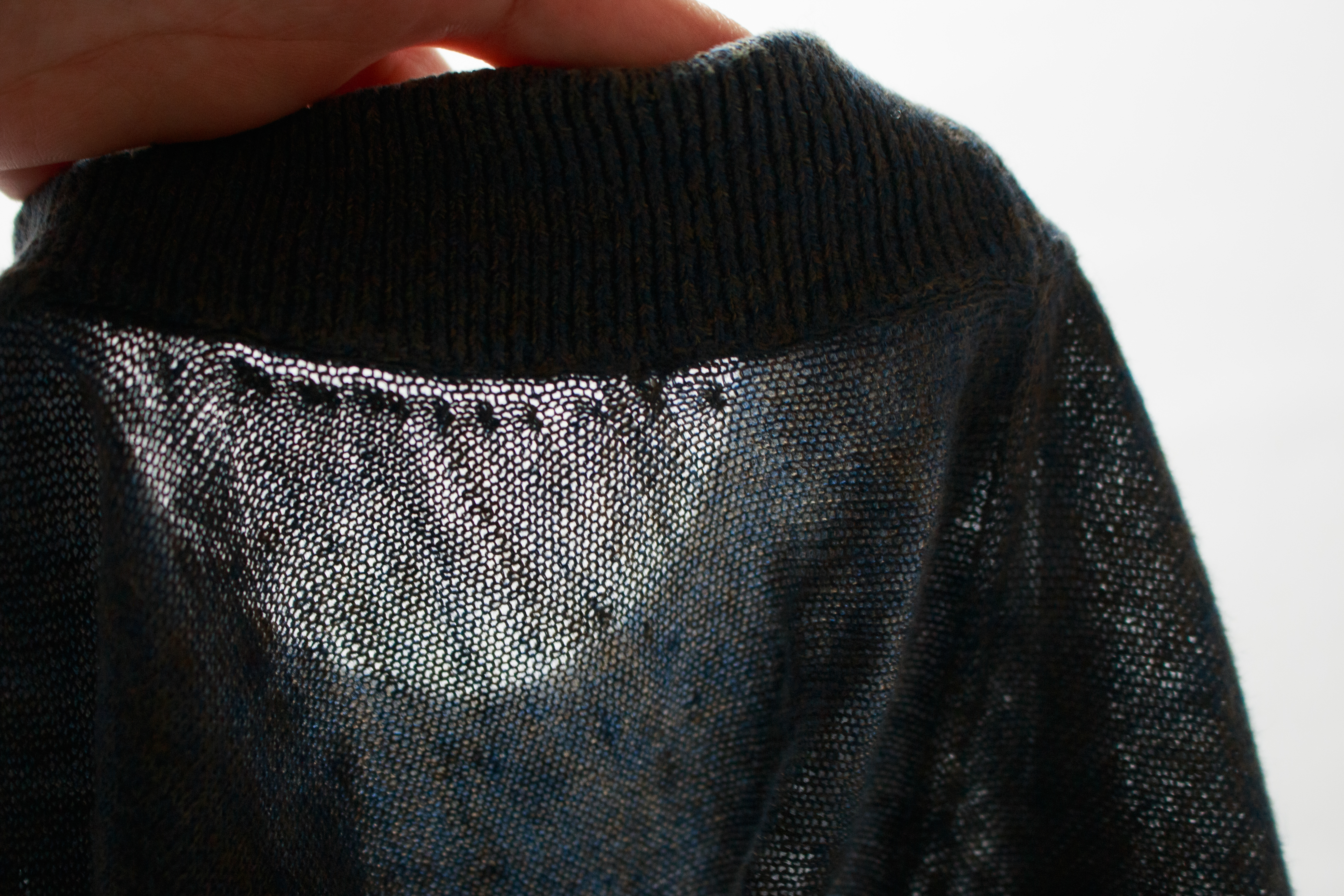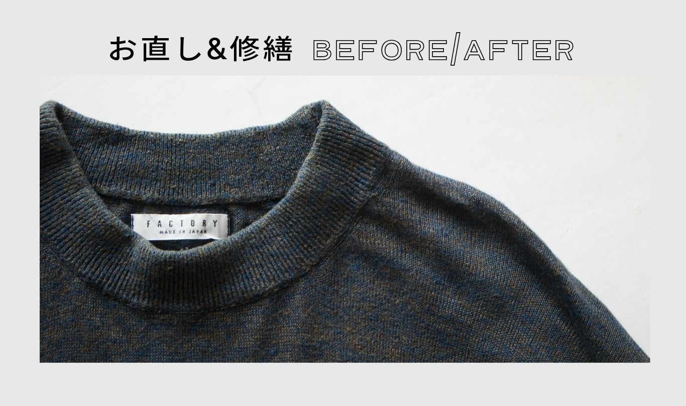 今回のお直しアイテム: FACTORY(ファクトリー)のリネンのニット(他店購入品)