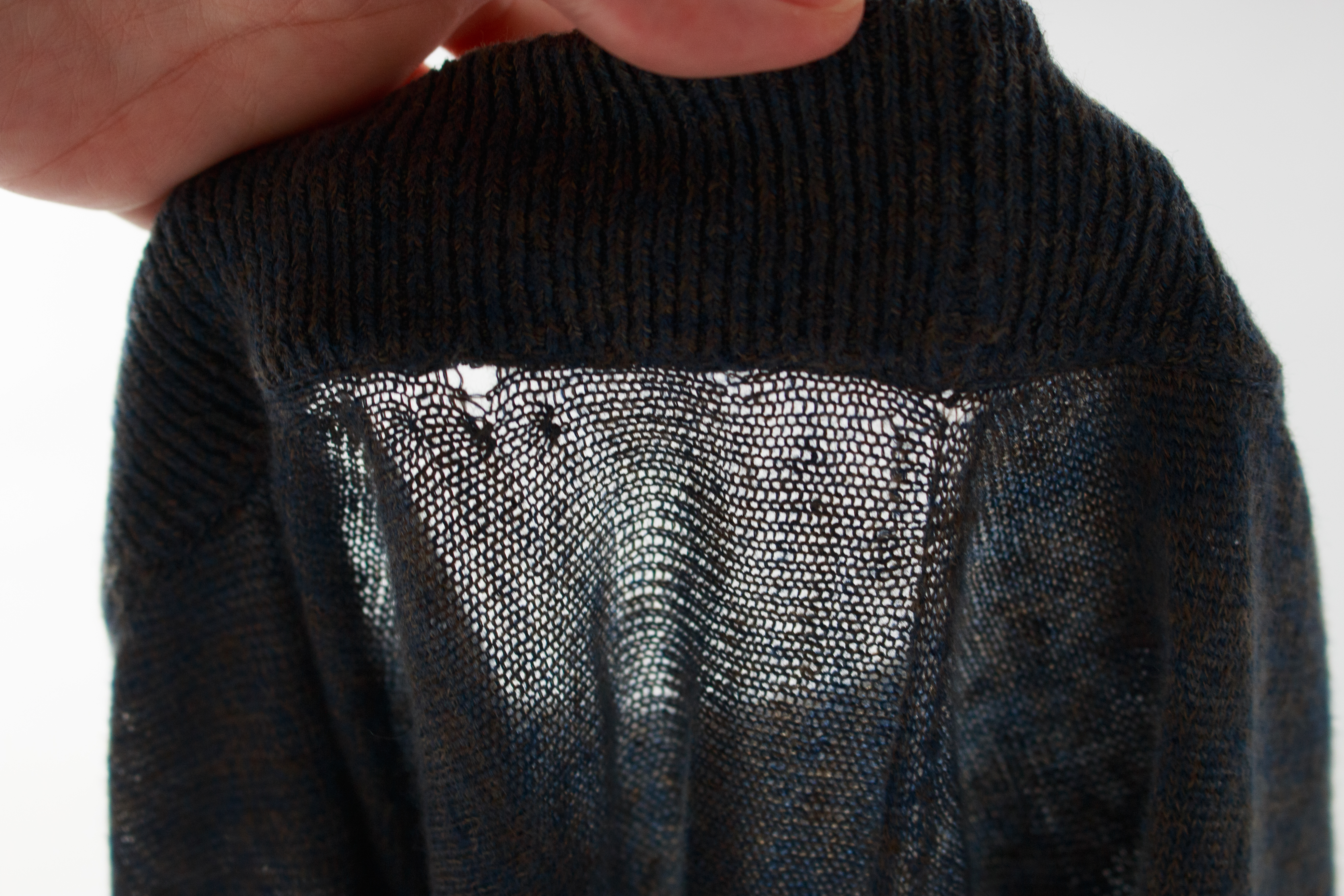 ニットのほつれの修理を希望しています。首元にほつれができ穴が開いた状態になってしまっています。