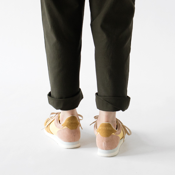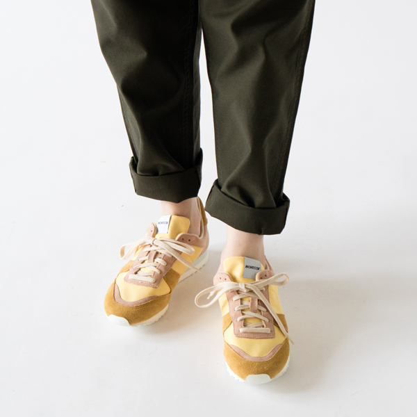 NOVESTA(ノヴェスタ)の定番シリーズMARATHON CLASSICに新たに仲間入りしたのは、爽やかに足元を彩るLIGHT YELLOW。優しいカラーなので足元が目立ちすぎないので、デニムなど手持ちの洋服とも合わせやすいく、いつも白や黒のスニーカーを選びがちな方にも取り入れてみていただきたい一足です。