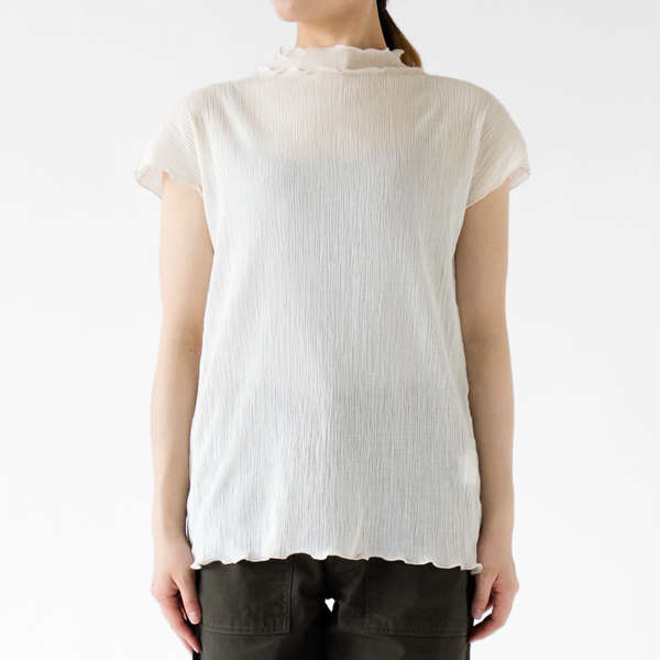 薄手の素材を使用しているためインナーが透けやすいので、肌に馴染む色のインナーを合わせていただくのがオススメです。OFF WHITEは特に透けますので、色味の強いインナーを着てさりげなく透けさせるのもオシャレです。