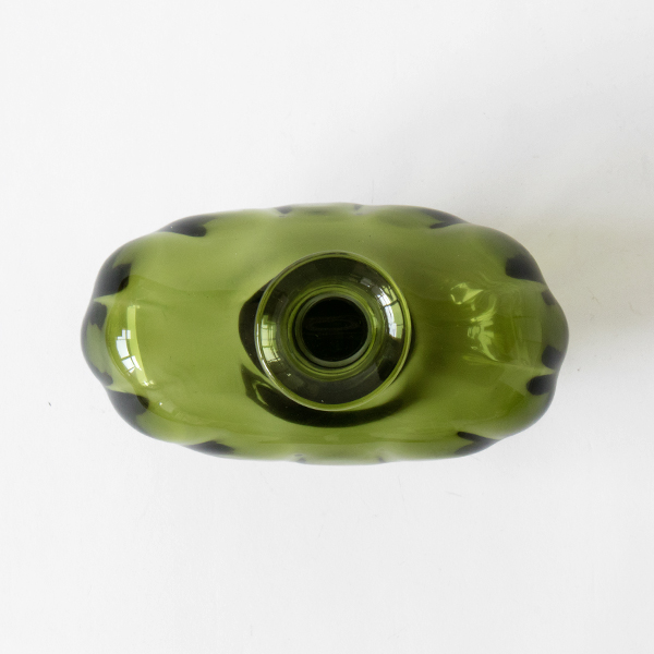 今では100以上の色を操る津軽びいどろですが、そのはじまりは、ひとりの職人がたまたま七里長浜の砂を原料に加えたことがきっかけでした。砂を加えたことで無色透明なガラスが、偶然にも深みのある美しい緑へと色づいたのだそう。どこか懐かしさを感じるこの色ととろんとしたフォルムからは、手仕事のぬくもりも感じられます。