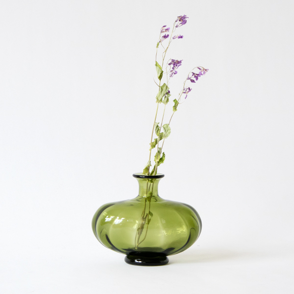 横長の安定感のあるしっかりとしたサイズの花器ですが、口がすぼまった形なので生けたお花がだらんと広がることもなく、使いやすい形。奥行きがないので、棚の上など幅の狭い場所にも置きやすいデザインです。草花との相性も良い色なので、季節の花はもちろん、グリーンを挿すだけでも様になります。窓からの光を集めて、机や壁に投影される色もまた美しい「七里長浜」シリーズの花器。木箱入りなので、大切な方への贈り物にもお選びください。