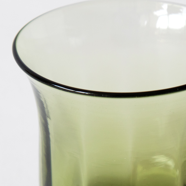 心が穏やかになる美しい色が魅力の、津軽びいどろの「七里長浜」シリーズ。七里長浜とは、青森の美しい自然のなかに七里(約28km)も続く長い長い砂浜のことで、この深みのある緑色は、七里長浜の砂を加えることで生み出された色なのだそう。一度は絶版になったものの、伝統的な宙吹きという技法を次の世代に引き継いでもらいたいという職人の想いによって復刻したシリーズで、青森でしか作れない色と姿をもつ工芸品なのです。