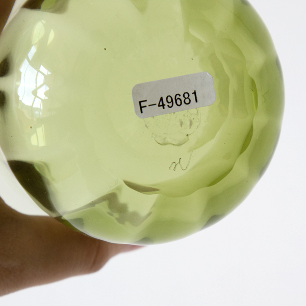 今では100以上の色を操る津軽びいどろですが、そのはじまりは、ひとりの職人がたまたま七里長浜の砂を原料に加えたことがきっかけでした。砂を加えたことで無色透明なガラスが、偶然にも深みのある美しい緑へと色づいたのだそう。どこか懐かしさを感じるこの色ととろんとしたフォルムからは、手仕事のぬくもりも感じられます。