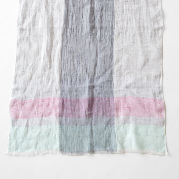 リネンは、サラサラとした気持ちのいい肌触りと軽さが夏にぴったりの素材です。風を感じることもできる薄生地にのせた儚げな色美しいグラデーションのストールは、女性への誕生日プレゼントなどにおすすめです。巻き方によって色の出方も異なり、おしゃれを楽しめるストールです。
