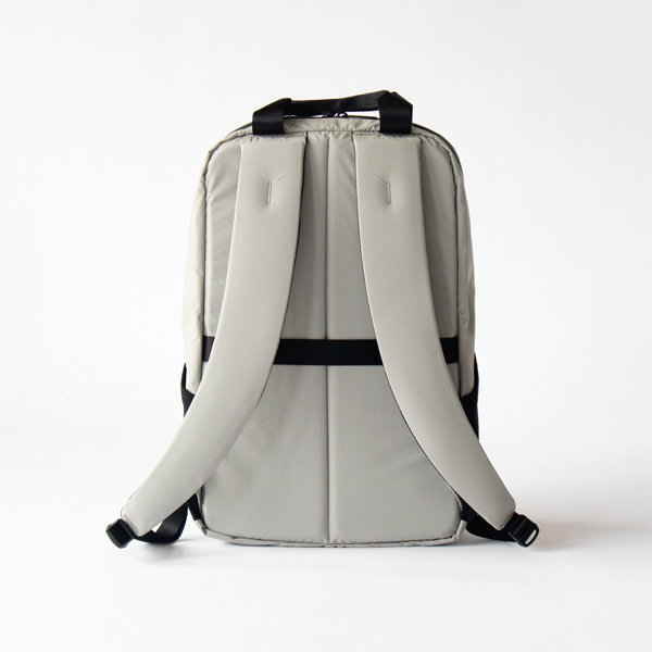 背面に内蔵したウレタン素材の厚手パッドとショルダーハーネスは、体の負担を軽減して背負いやすい上に、耐久性も向上して長く使えるといった利点があります。リュックは肩に負担もかかりやすいので、その点が考慮されているのはありがたいですね。背面中央に付いているストラップループは、キャリーバッグのハンドルに通すことが可能なので旅行のお供にも適しています。ビジネスバッグとしても違和感のないデザインで、仕事に必要な物とスポーツウエアを収納して、仕事帰りにそのままジムへ行くというのにもちょうどいいリュックです。