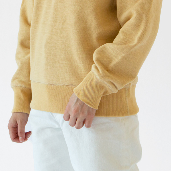 GG SWEAT CREWNECKの「GG」とは、ガラガラ(生地)の略。ガラ紡(和紡)機から作る糸で出来た生地のことをそう呼び、木綿のような膨らみと、自然な色ムラ感が特徴です。肉厚ながら、ふんわりとした柔らかな素材で、裏面は起毛させておらず、適度な厚みもあるため、夏以外の3シーズン活躍します。