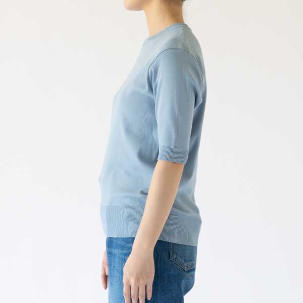 gicipi(ジチピ)のカットソーは、洗濯後のクローゼットに休ませる暇なく、またすぐに袖を通したくなる滑らかな着心地です。クルーネック5分袖ニットソーは、一枚で着るにも重ね着にも重宝する一枚で、透け感が気にならない適度な薄手としっとりとした生地が体の動きにあわせて伸縮してくれるので、いつでも気持ちよく着ることができます。この肌触りの良さは、直接肌に触れるインナーウエアをイタリアで長年作り続けてきた老舗ブランド、gicipi(ジチピ)だからこそ生み出せるもの。
