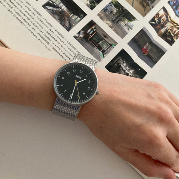 一見無機質にも思える腕時計ですが、それぞれのベルトがシンプルな文字盤に良くマッチしていて、スマートな印象。見やすい文字盤に、BRAUNのチャームポイントとも言えるイエローの秒針という絶妙なバランスを感じることが出来る一本です。