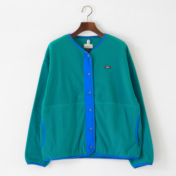 秋冬の温度調整がしやすく、アウターとしてもコートの下に着るインナーとしても活躍。胸ポケットがアクセントになりつつ、スマートフォンや小物を収納できる実用性も備えています。襟ぐり・袖口・裾に施されたパイピングが全体を引き締め、どこかレトロなアウトドアムードを漂わせるジャケットです。