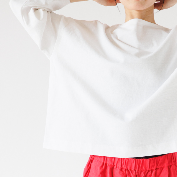 ぴったりとした着心地よりも、リラックスして着たいという方のためのこちらのバスクシャツ。みた通りの体を締め付けないシルエットで、肩周りにゆとりがあるため脱ぎ着しやすく、動きやすいのも特徴です。型崩れしにくく丈夫な生地は体のラインを拾わないので、体型が気になる方にもおすすめの一枚です。