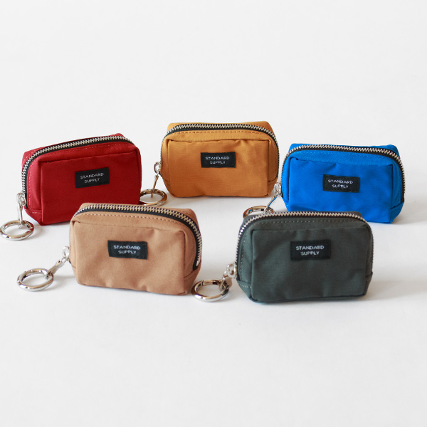 小さな存在ですが毎日を楽にしてくれる頼もしさ。ストラップを付けたり、バッグに取り付けたりと、暮らしに合わせた使い方ができる、チャーム感覚のスクエア型ポーチです。