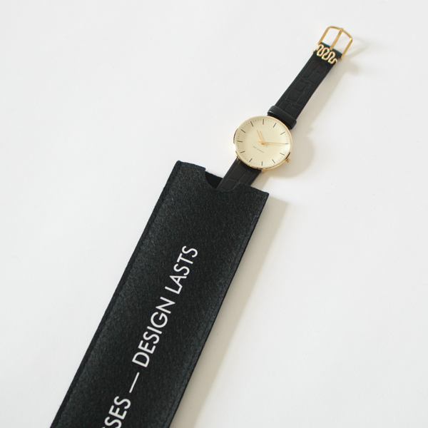 アルネ・ヤコブセンの代表作のひとつ「City Hall」は、1956年にヤコブセンがルードブレ市庁舎を建築した際に一緒に作られたウォールクロックのデザインをベースにしたシリーズ。50年代らしい一切の無駄を排除したクールなデザインが特徴的で、男女ともに使いやすくシックなスタイルが決まります。視認性の高いアラビアインデックスと凛としたレイアウトが特徴で、時代を超えて愛される北欧デザインのアイコンとも言える時計です。ARNE JACOBSEN × HAyU 腕時計 City Hallでは、その普遍的なデザインを34mmサイズに落とし込み、日常にすっと溶け込む上品な存在感を持たせています。City Hallシリーズとしては初となるイエローゴールドのケースに、やわらかなクラウドクリームの文字盤を合わせて、肌なじみがよく、性別を問わず上品に身につけられる一本。「少し遊び心のある大人」にぴったりの、アートピースのような佇まいです。