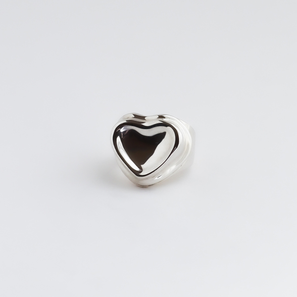 HAPPINESS RING(リング)は手作業から生まれたニュアンスがポイントのチャンキーリング。ハンドカービングによって掘り出されたハートモチーフは、実はデザイナー自身の初めてのリングをモチーフに現代的にアレンジしたもの。こういったぽてっとしたモチーフのリングは重くなりがちですが、職人が繊細にカービングしているので、手馴染みがとてもよく、非常に軽く感じます。中指や人差し指につけて、手元を華やげてくれますよ。