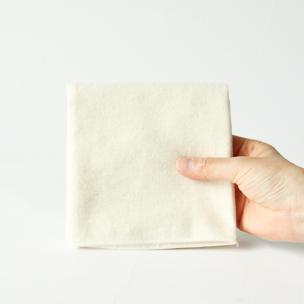 革は人間のお肌と同じであることを考えたら、ふんわりとしたコットンに化粧水をとってお顔のケアをする時のように、革用のクロスにも気を遣いたいものです。このコットンネルは脱色や染色を施していない未さらしのコットン100%でつくった柔らかいフランネルです。思わず頬ずりしたくなるほど柔らかなコットンネルで、革小物を優しくケアしてあげましょう。
