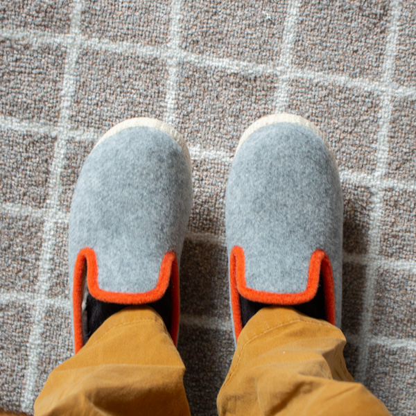 お部屋で気持ち良く過ごす時間を大切にしたいとき、足元にちょっとこだわってみるのはどうでしょう。RONDINAUD(ロンディーノ)のシャランテーズ Calmont Souris(カルモン スーリー) は、グレーとオレンジの組み合わせ。デザインもおしゃれで、ものづくりにこだわりあふれるルームシューズです。まるで外にも履いて行けそうなしっかりとした作りは、長い歴史のあるブランドならではのもの。色・柄をお部屋のイメージに合わせて考えるのも楽しい時間、内側のモコモコとした仕上げは、ウール素材を起毛し素足で履いても気持ち良い肌心地です。