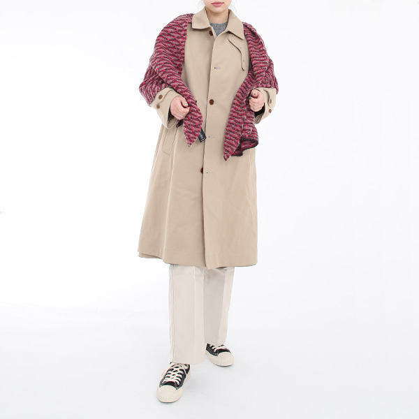 シェルワイドスカーフは、冬らしいボリュームが可愛いスカーフ。マフラーのようにふんわり巻いてもいいですし、広げて肩に羽織るのもおすすめです。ボリュームの割にさほど重くなく、日々のおしゃれに選びやすいスカーフです。編み柄が独特で日本にはないようなデザインが、ダークトーンを選びがちな冬の装いをぱっと華やげてくれます。