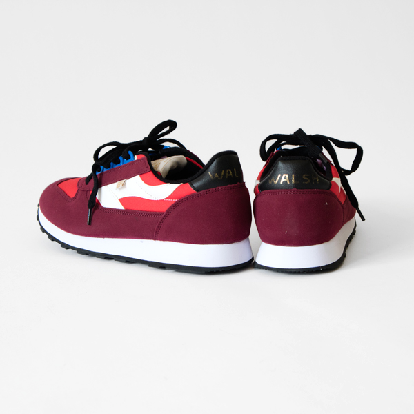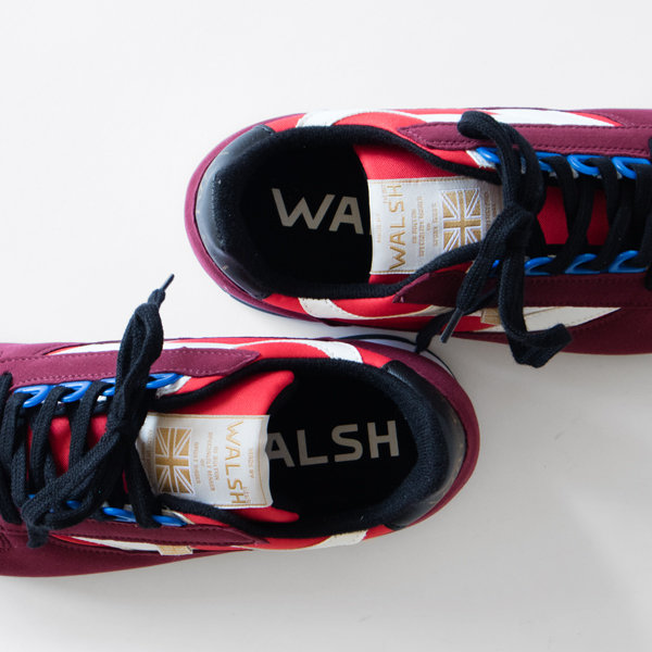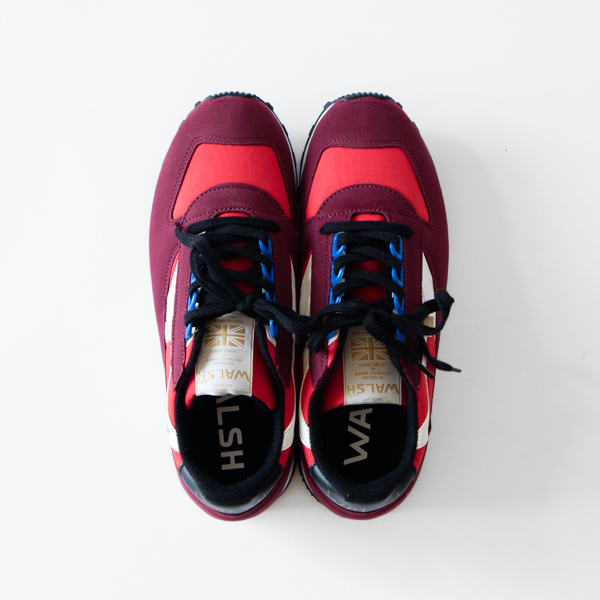 1961年の創業以来陸上、ロードランニング、ラグビー、フットボール、クリケット、あらゆるジャンルのスポーツに取り組む人々に向け、手作業によって個々の顧客の要望を形にしてきたWALSH(ウォルシュ)ですが、中でもフェルランニングシューズは、現在もなお英国のフェルランナー達に愛用されています。目を引くポップなカラーリングが魅力のWALSH スニーカー Europeanは、フェルランニングシューズをベースに作られており、機能性とファッション性を両立させたスニーカーです。