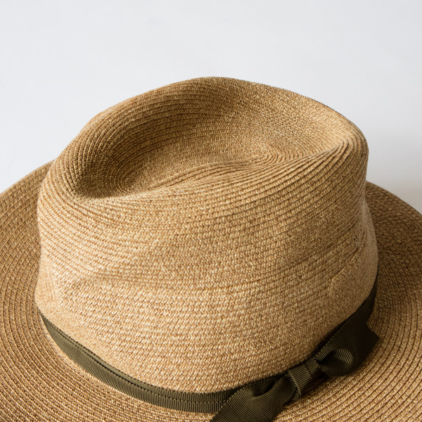 今回は夏らしさを楽しめる明るいカラーのBROWNと、遊び心のあるオレンジのリボンとダークカラーを組み合わせたDK.BROWNの2種類のカラーを選びました。ハットは一番目に留まりやすく、目線を上にあげることができるので、スタイルをよく見せてくれます。シンプルなワンピースと合わせてもラフになりすぎず、上品にまとめてくれるので、普段の装いに変化をつけたいときに手軽に取り入れられるアイテムです。
