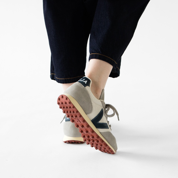 すっきりとしたフォルムと、かかとに入った大きめのロゴがポイントになったランニングシューズRIO BRANCO。スポーティーになりすぎず、どんなスタイルにも合わせやすい万能なシリーズです。履きやすさや動きやすさを重視して選ぶことが多いスニーカーですが、VEJA(ベジャ)のスニーカーを知ると「どんな素材か」「どんなところで作られているのか」ということまで知りたくなります。一足のスニーカーを通じて、もの選びの新たな視点を発見させてくれるブランドです。