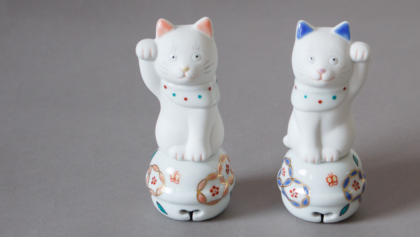 器が中心だった窯が、初めて「型を起こしてつくった人形」として挑戦した、招き猫。人と人の出会いから始まったものづくりが、現在も続く上出長右衛門窯の招き猫、そして上出長右衛門窯の人形づくりの原点になっています。