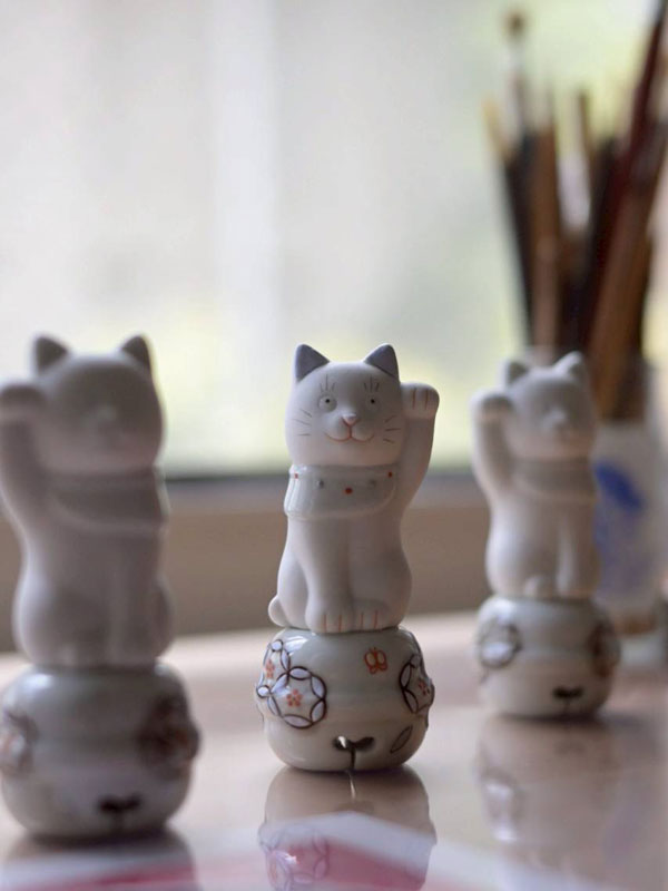 毎日の暮らしの中で、ふと視線を向けたときに少し気持ちが和らぐような、季節を問わずそばに置いておける招き猫。その姿ができあがるまでを、工房での制作工程、インタビューとともにご紹介します。