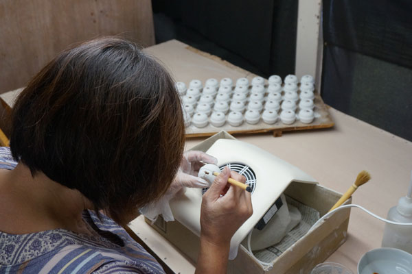 「他の商品は工房で絵付けをしていますが、招き猫については、以前窯に在籍していた招き猫専属の絵付師にお願いしています。直営店限定で販売している1点ものの招き猫企画や、他店さまとのお取り組みでも、色々な柄を考えて、絵付けしてくれています。」