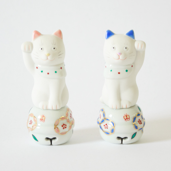 今回ご紹介するのは、手のひらにのるほど小さな九谷焼の招き猫。もともと上出長右衛門窯の人気商品を、ZUTTO別注の絵付けで作っていただきました。鈴や前掛けの絵柄は新たにデザインし、鼻や耳の色まで変えた別注品です。