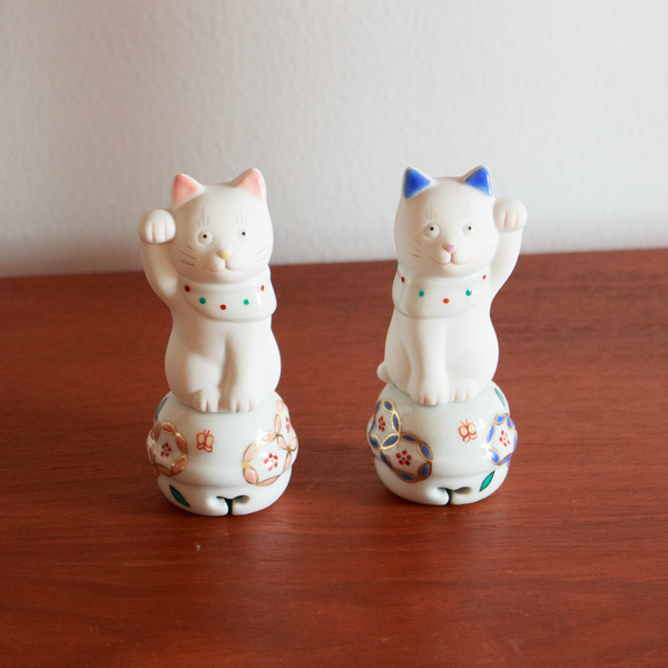 ▲一番初めに商品化された招き猫、招猫 鈴なり。