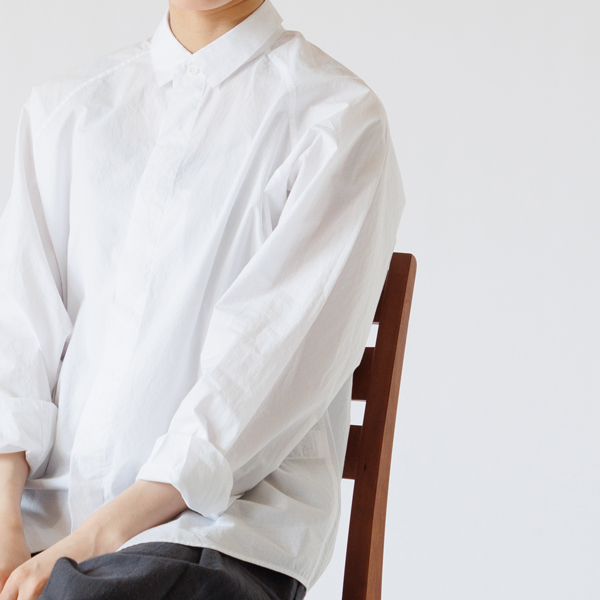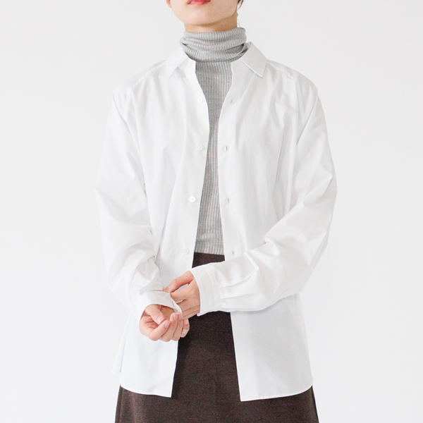 きちんとしすぎて「かしこまった印象」になりがちな従来のシャツほど、気負わずに着ることができるシャツに仕立てられ、普段カットソーを選ぶことの多い方にも着やすいシャツになっています。