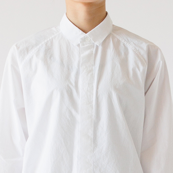 デザイン: ラグランスリーブシャツ、比翼前たて仕様、台付襟(芯地なし)
