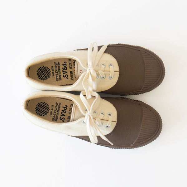 PRAS which advocates "JAPANISM PRODUCT" in the philosophy. As well as the appearance of the product, it is a brand that began to disseminate the internal characteristics of Japanese manufacturing, such as "facing with the material seriously" and "delicate and honest manufacturing". The vulcanized process enables the production of highly elastic rubber, and makes sneakers with features such as a comfortable fit to the foot and a tendency to peel off the bottom. In order to create a universal product for the next 10 years and beyond, we are working on a long-wearing pair to fit any clothing.