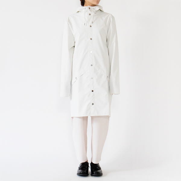 The RAINS Long Jacket is highly functional, yet has a minimalist, sophisticated and beautiful form with an urban finish. The material is treated with polyurethane to give it a light and smooth texture. When you think of a raincoat, you tend to think of smooth, rough, hard fabric, but when you actually wear this Long Jacket, you will find that the fabric is smooth and comfortable, just like wearing a thin coat. I'm surprised. The width and sleeve length are relatively loose, so you can wear it as if you were completely wrapped up in it.