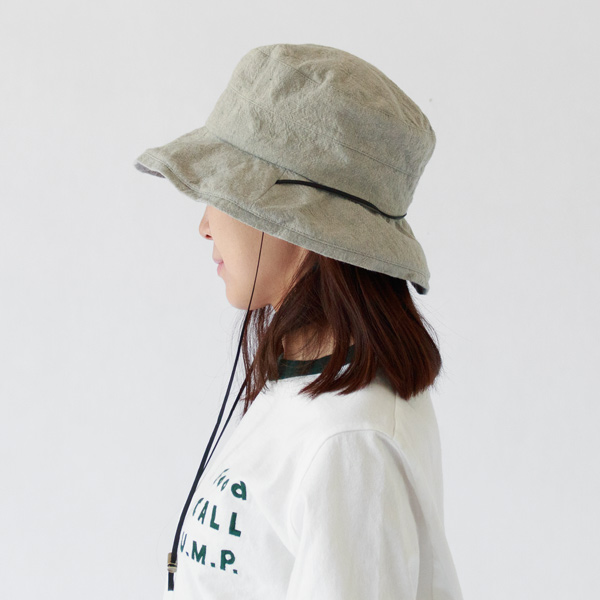 As the name suggests, this linen ramie hat has a 2-way design. What makes it 2WAY is that the string and drawcord can be removed. Attaching a string will accent the back of the hat, and tightening the drawcord will prevent you from getting blown away by the wind while riding a bicycle, making it perfect for outdoor activities, camping, sports days, and other active outings. Match.