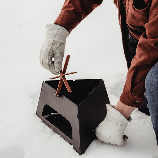 The BAREBONES Flat Book Folding Stove is a portable camp stove that, as its name suggests, folds up like a book for storage. Its flat design, measuring just 2.5cm thick, makes it easy to carry. Its reliable design allows you to quickly assemble and start a fire whenever you need it.