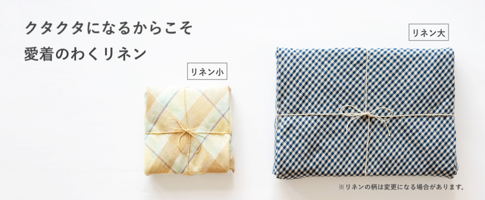 リネンラッピングはZUTTOオリジナルのもの。大小サイズがあるので、受け取った方はリネンハンカチや包み布としてお使い頂けます。