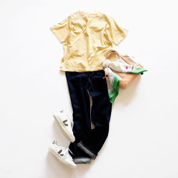 ナチュラルダイ 丸胴クルーネック半袖Tシャツ(ヒマワリ染(YELLOW))